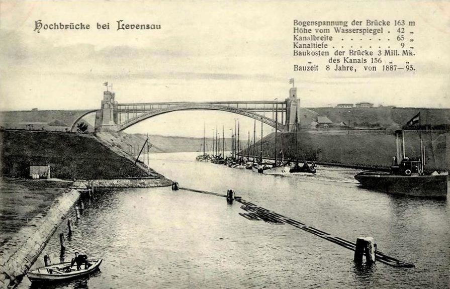 Abb.: Die Levensauer Hochbrücke kurz nach dem Ersten Weltkrieg. Blick nach Osten