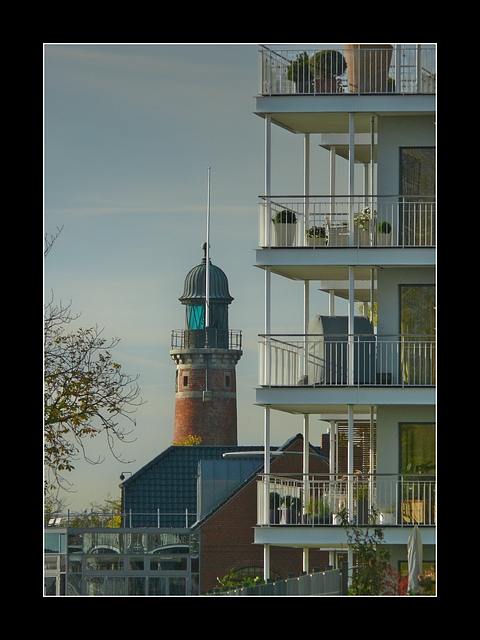 Leuchtturm von Norden. Im Vordergrund rechts die neue Bebauung