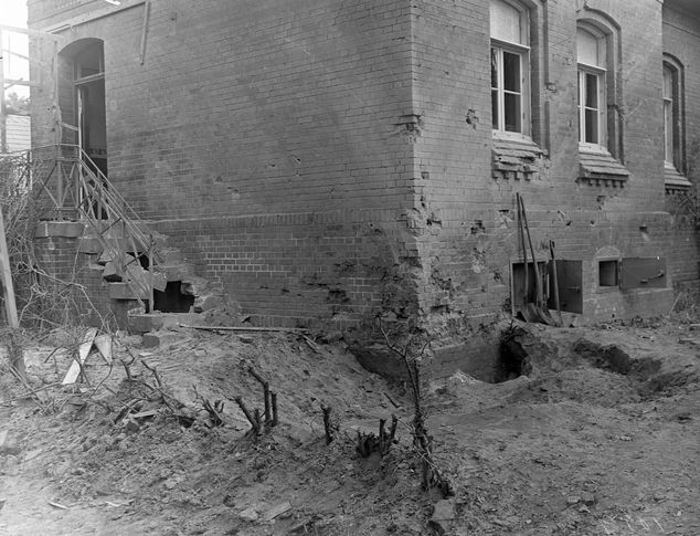 Bombe beschädigtes Haus Königstraße Nr. 39.