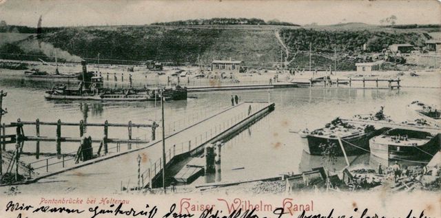 Im Zuge der Kanalerweiterung 1907-14 wurde diese Schwimmbrücke durch die Prinz-Heinrich-Brücke ersetzt. Da diese sich aber für Fußgänger wieder relativ weit westlich des Ortskerns befand, erschallte bald der Ruf nach einer Fähre über den Kanal.