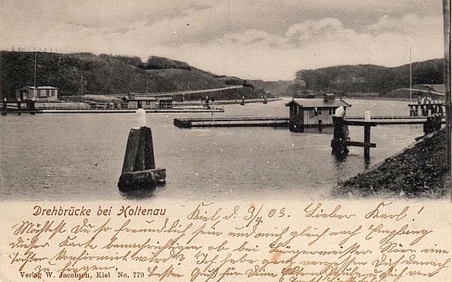 Abb.: Die Prahmdrehbrücke — wahrscheinlich vom Holtenauer Ufer